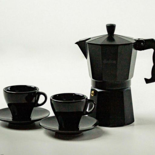 CAFETERA ITALIANA + 2 POCILLOS + PLATO CERAMICO *